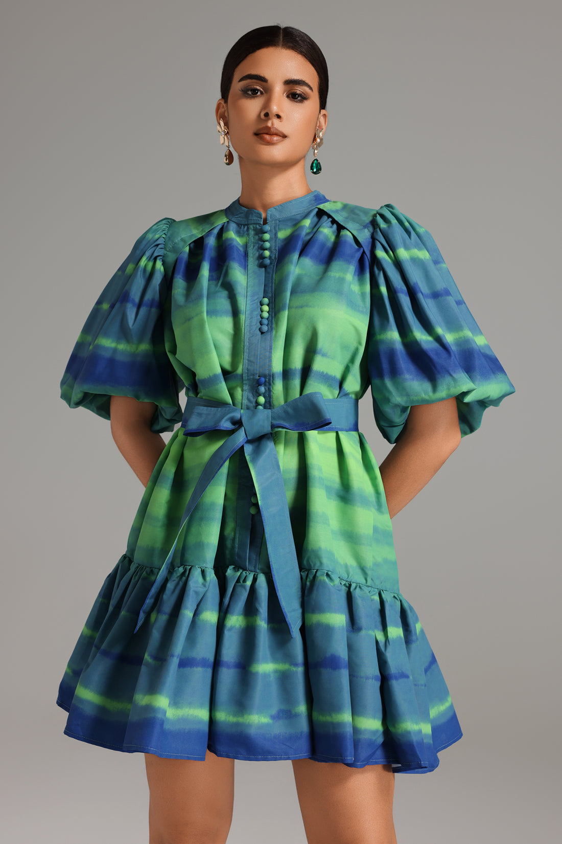 Step into a world of celestial beauty with the Aurora Borealis Mini Dress. Inspired by the enchanting northern lights, this dress features a stunning gradient of blue and green tones that shimmer and shift with every movement. Crafted from a lightweight, breathable fabric, it offers both comfort and style, making it perfect for various occasions.