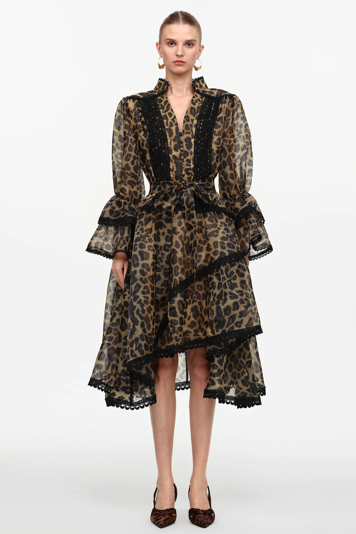 Savage Grace Leopard Ruffle Midi Dress